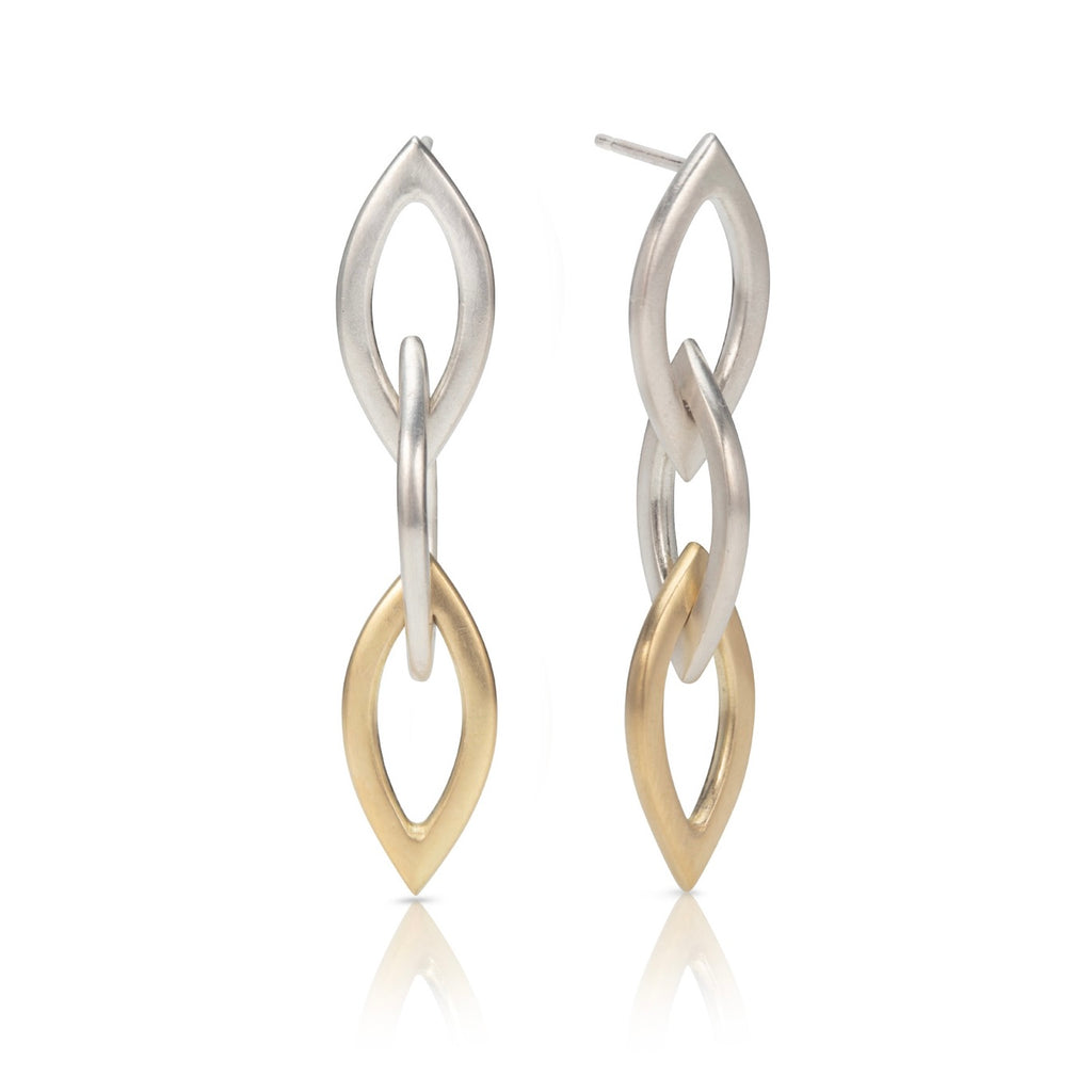 Dalia Chain Earrings, Three Link, Silver and Gold