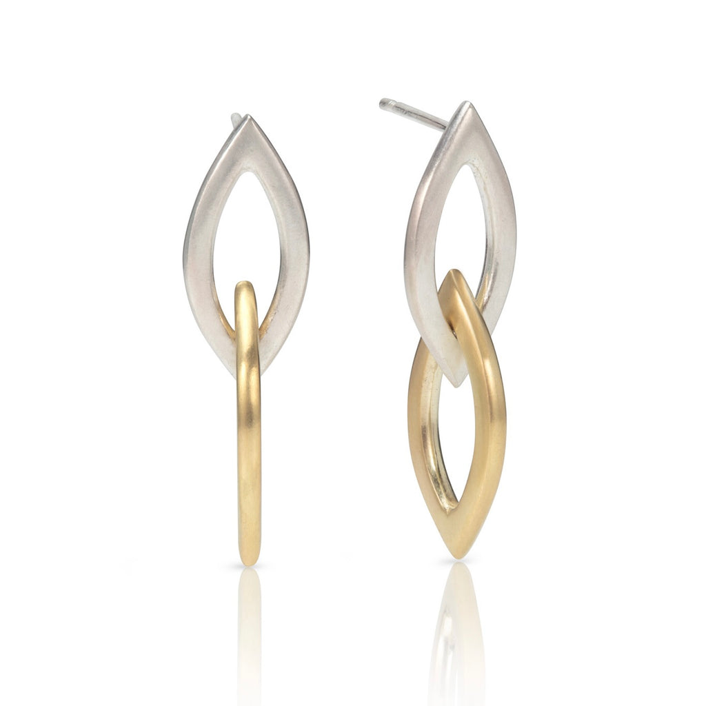 Two links of the marquise shape that is used in all the Dalia collection pieces, one sterling silver and one solid 18ct gold. These earrings move beautifully when worn and are very light and comfortable to wear.