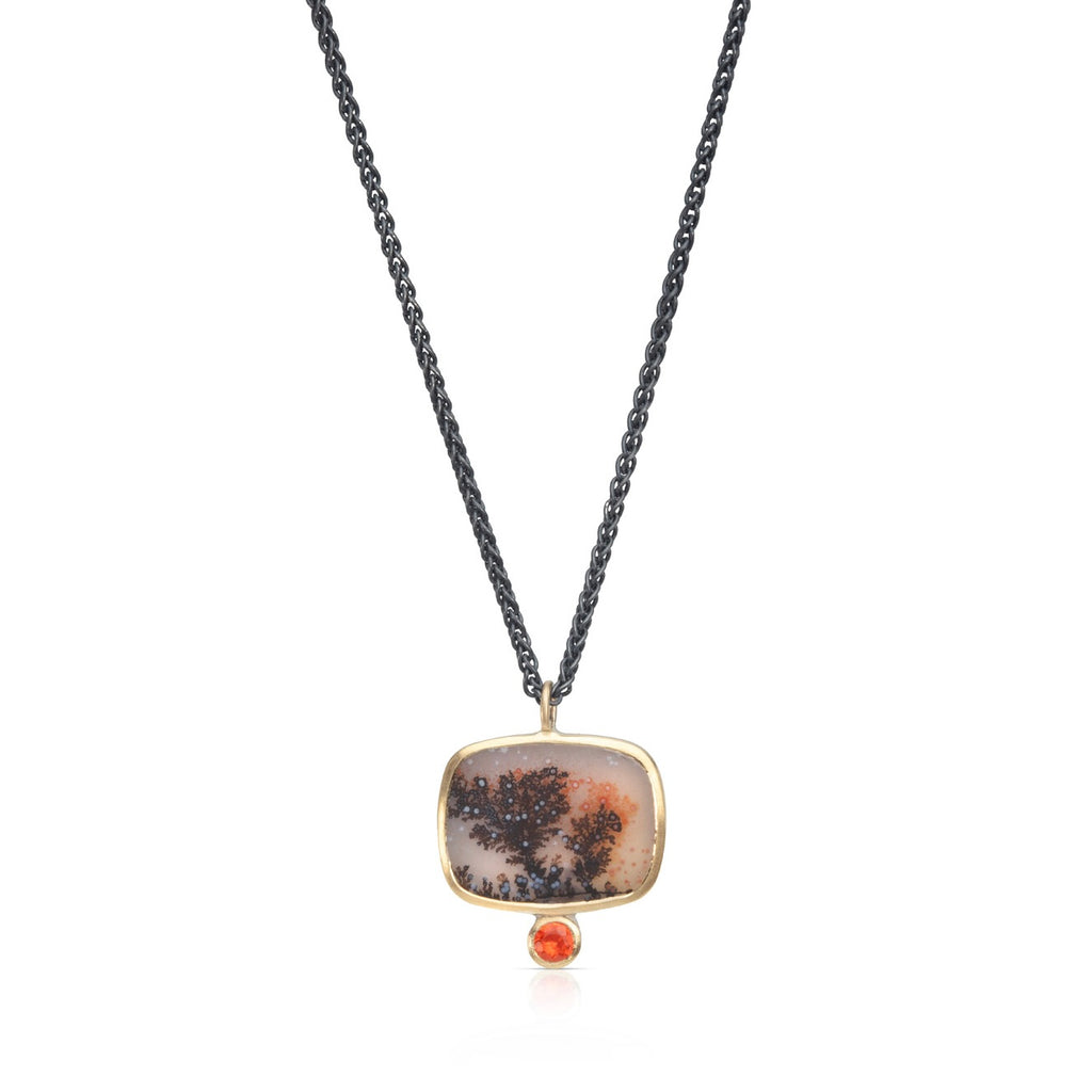 Dendritic Agate and Fire Opal Pendant