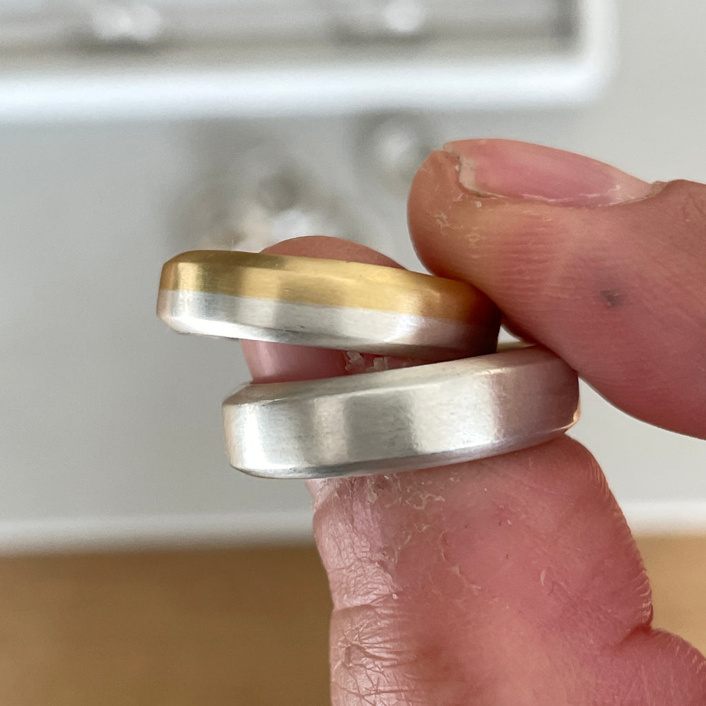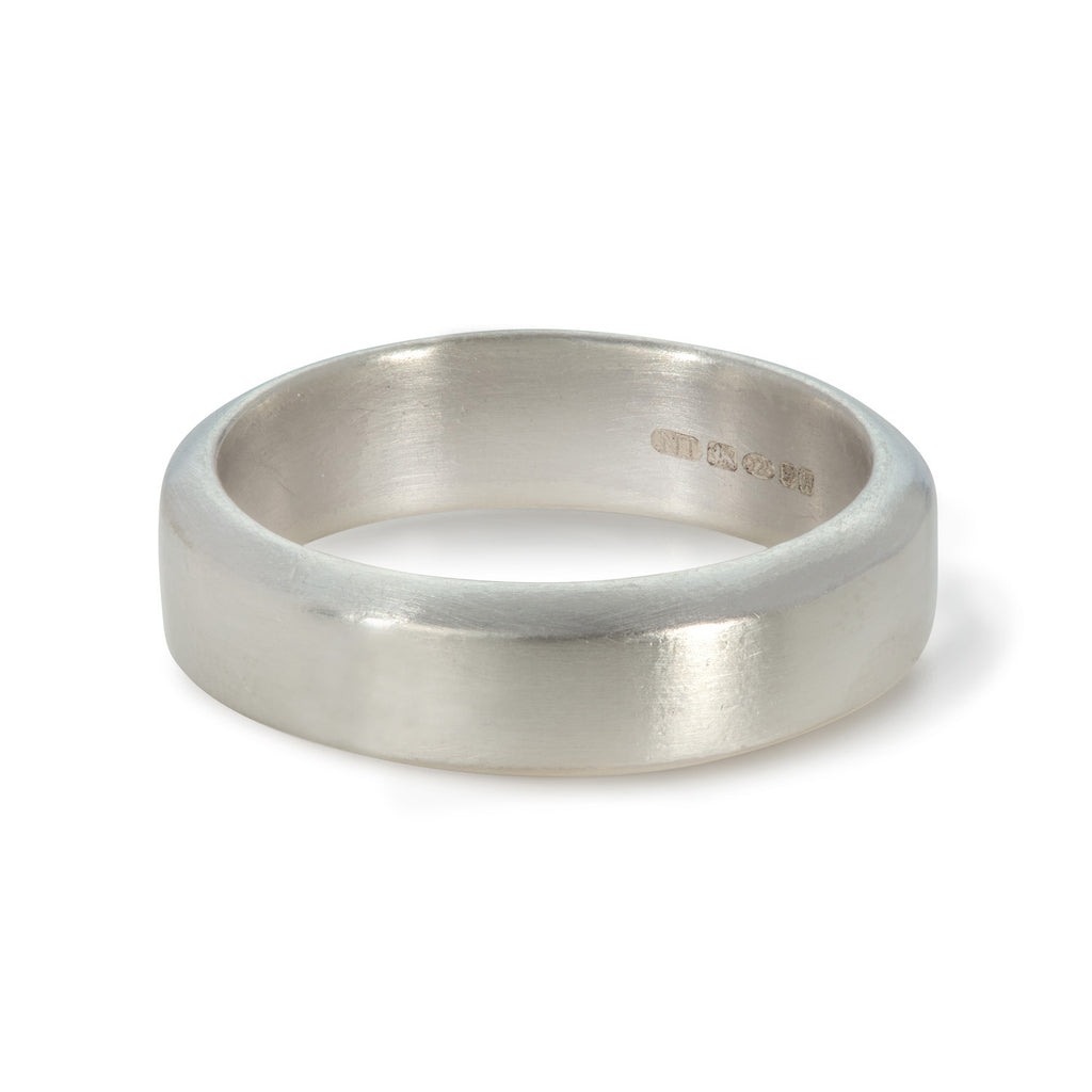 This large Ridge Ring is 5.4mm wide and looks just as good alone as it does stacked with others. A solid silver ring that would also make a perfect wedding ring, it has handcarved bevelled edges and a soft satin finish