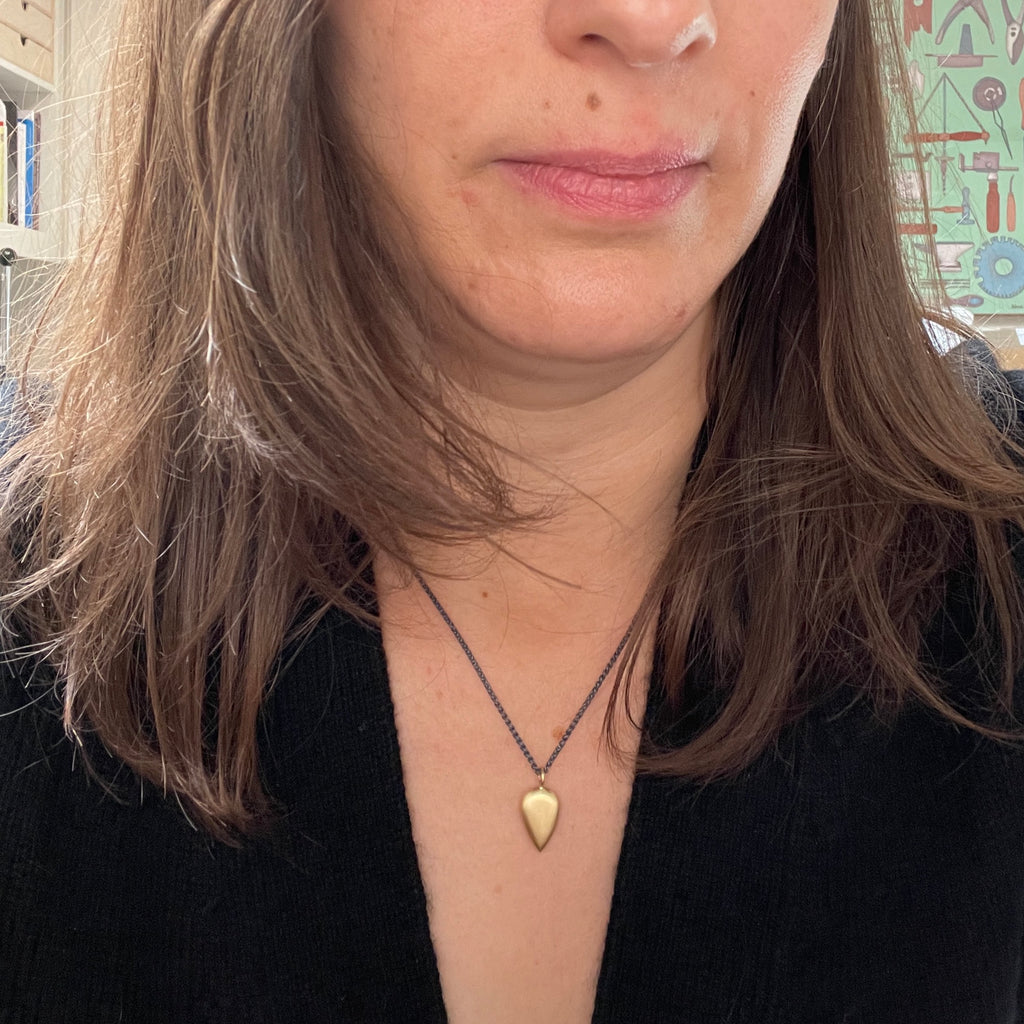 A drop of solid 18ct gold, simple and tactile this is a pleasure to wear and looks great alone or layered with other necklaces.